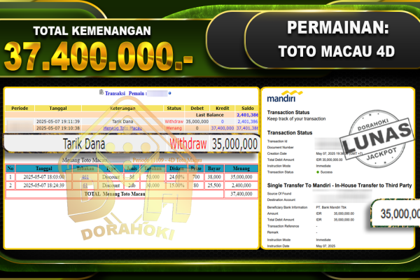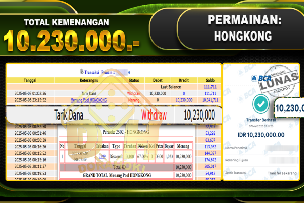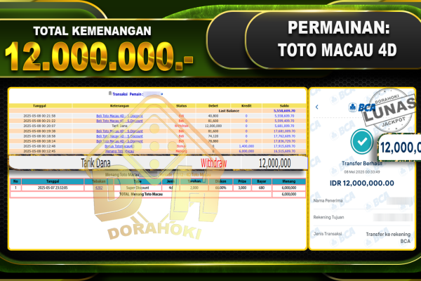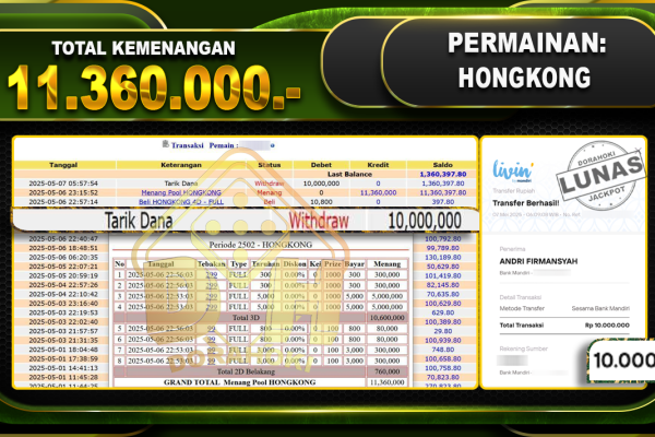 Bukti JP TOGEL HONGKONG – ucapkan selamat kepada user id Sunxxx atas kemenangan di TOGEL HONGKONG dengan total kemenangan Rp 12.000.000,- . Yang pasti nya langsung LUNAS sesuai bukti ya bosku. Dorahoki nih bosku berapapun akan tetap kami bayar lunas ya bosku. Kami mengucapkan Terima Kasih telah mempercayakan DORAHOKI sebagai Bandar Online pilihan dalam bermain…