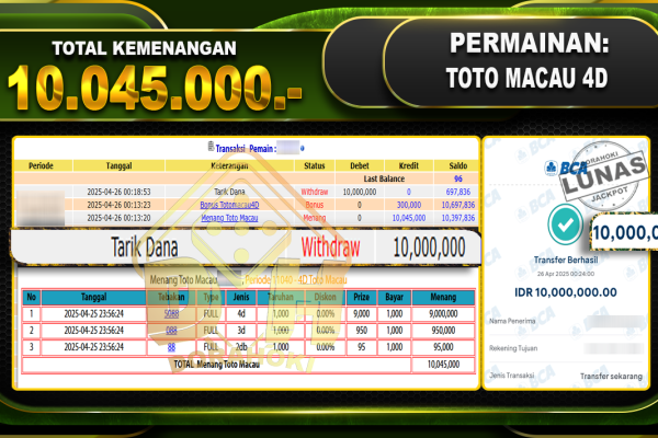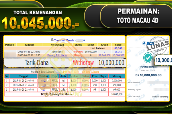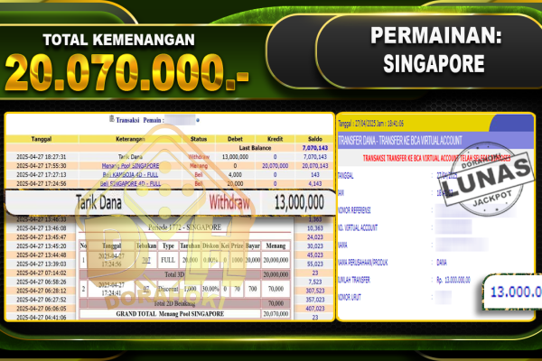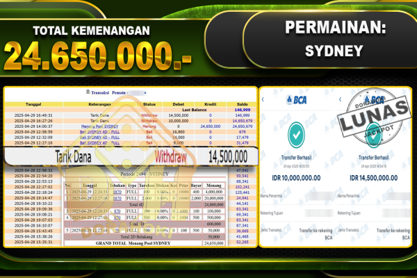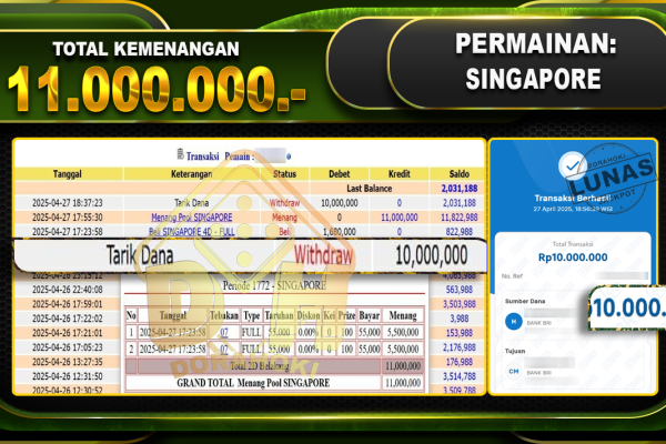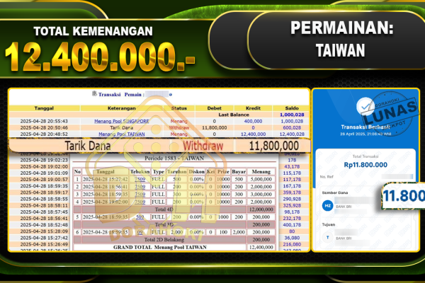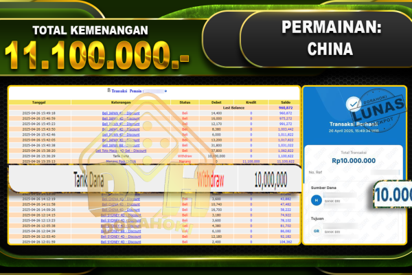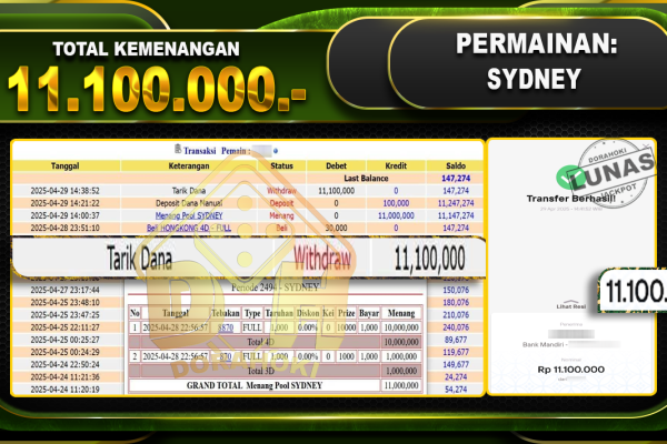 Bukti JP TOGEL SYDNEY – ucapkan selamat kepada user id Notxxx atas kemenangan di TOGEL SYDNEY dengan total kemenangan Rp.24.650.000,- . Yang pasti nya langsung LUNAS sesuai bukti ya bosku. Dorahoki nih bosku berapapun akan tetap kami bayar lunas ya bosku. Kami mengucapkan Terima Kasih telah mempercayakan DORAHOKI sebagai Bandar Online pilihan dalam bermain judi…