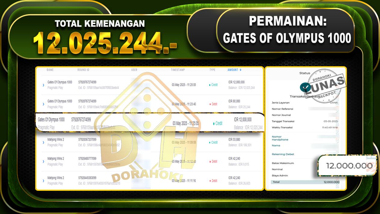 Bukti JP GATES OF OLYMPUS 1000 – ucapkan selamat kepada user id Cimxxx atas kemenangan di GATES OF OLYMPUS 1000 dengan total kemenangan Rp.12.025.244,- . Yang pasti nya langsung LUNAS sesuai bukti ya bosku. Dorahoki nih bosku berapapun akan tetap kami bayar lunas ya bosku.