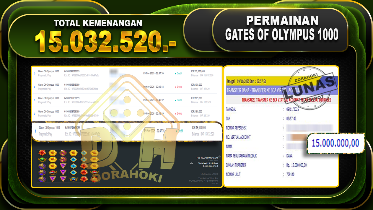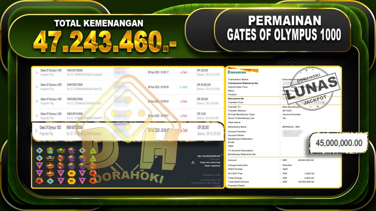 Bukti JP Gates Of Olympus 1000 – ucapkan selamat kepada user id d00xxx atas kemenangan di Gates Of Olympus 1000 dengan total kemenangan Rp.24.023.529,- Yang pasti nya langsung LUNAS sesuai bukti ya bosku. Dorahoki nih bosku berapapun akan tetap kami bayar lunas ya bosku