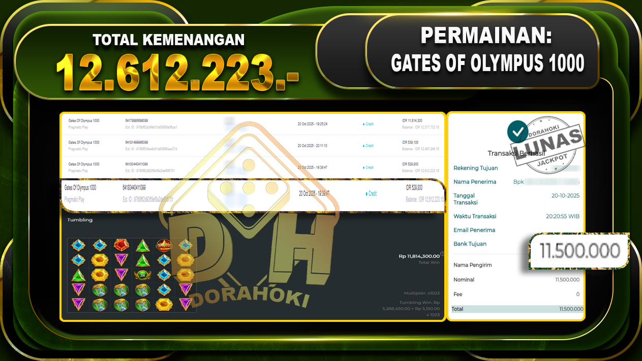 Bukti JP Gates Of Olympus 1000 – ucapkan selamat kepada user id hokxxxx atas kemenangan di Gates Of Olympus 1000 dengan total kemenangan Rp.12,612,223,- Yang pasti nya langsung LUNAS sesuai bukti ya bosku. Dorahoki nih bosku berapapun akan tetap kami bayar lunas ya bosku