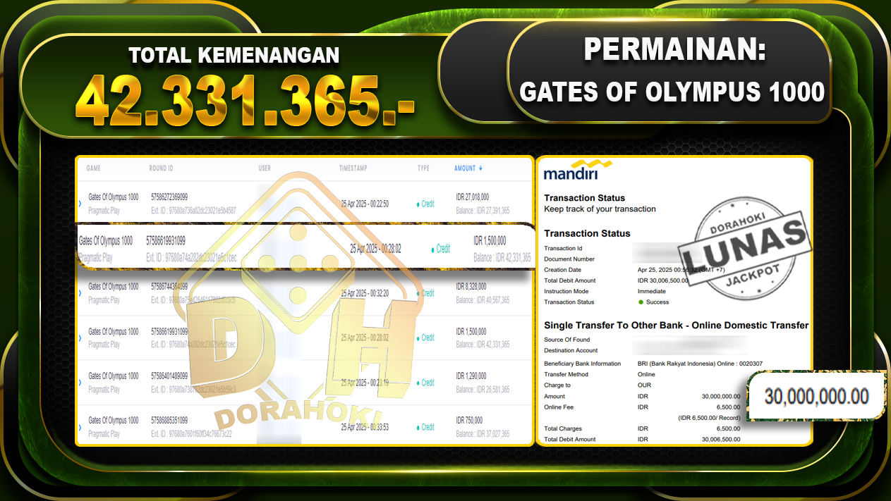 GATES OF OLYMPUS 1000 – DORAHOKI 25 April 2025