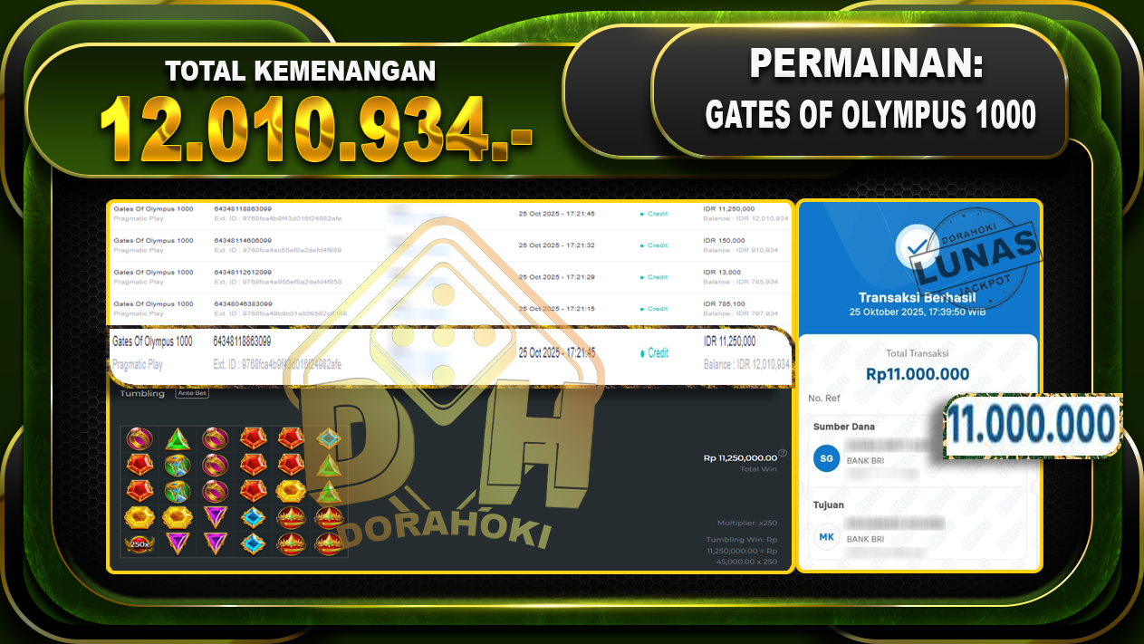 Bukti JP Gates Of Olympus 1000 – ucapkan selamat kepada user id kepxxxx atas kemenangan di Gates Of Olympus 1000 dengan total kemenangan Rp.12,010,934,- Yang pasti nya langsung LUNAS sesuai bukti ya bosku. Dorahoki nih bosku berapapun akan tetap kami bayar lunas ya bosku