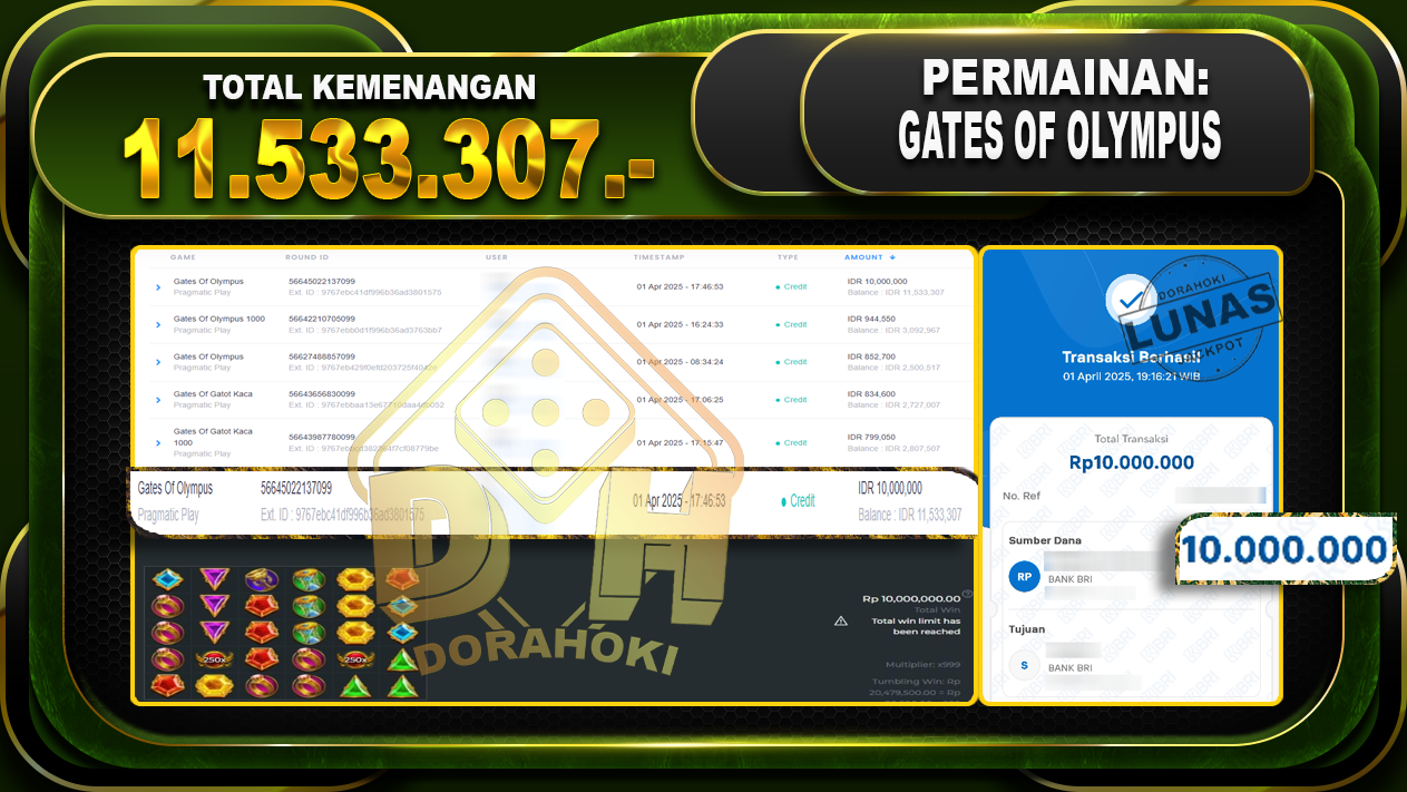Bukti JP GATES OF OLYMPUS – ucapkan selamat kepada user id Miaxxx atas kemenangan di GATES OF OLYMPUS 1000 dengan total kemenangan Rp.11.533.307,- . Yang pasti nya langsung LUNAS sesuai bukti ya bosku. Dorahoki nih bosku berapapun akan tetap kami bayar lunas ya bosku.