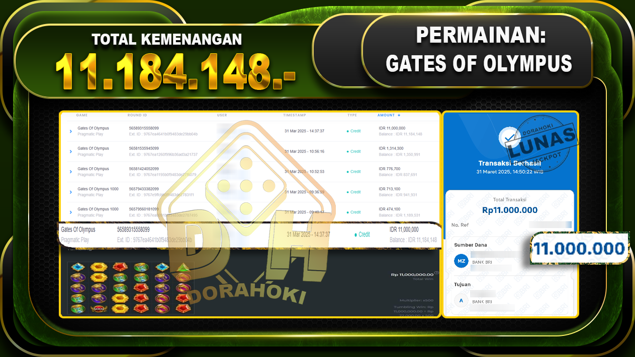 Bukti JP GATES OF OLYMPUS – ucapkan selamat kepada user id Menxxx atas kemenangan di GATES OF OLYMPUS 1000 dengan total kemenangan Rp.11.184.148,- . Yang pasti nya langsung LUNAS sesuai bukti ya bosku. Dorahoki nih bosku berapapun akan tetap kami bayar lunas ya bosku.