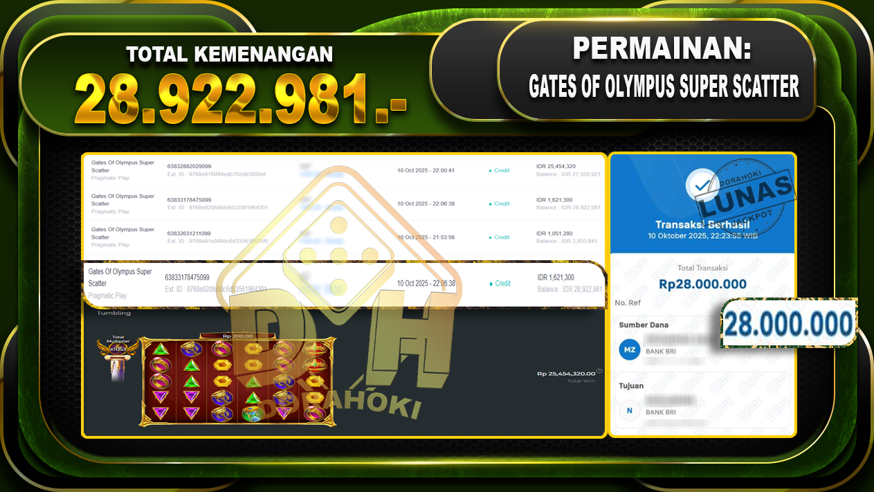 Bukti JP Gates Of Olympus Super Scatter – ucapkan selamat kepada user id nrxxx atas kemenangan di Gates Of Olympus Super Scatter dengan total kemenangan Rp.28.922.981,- Yang pasti nya langsung LUNAS sesuai bukti ya bosku. Dorahoki nih bosku berapapun akan tetap kami bayar lunas ya bosku