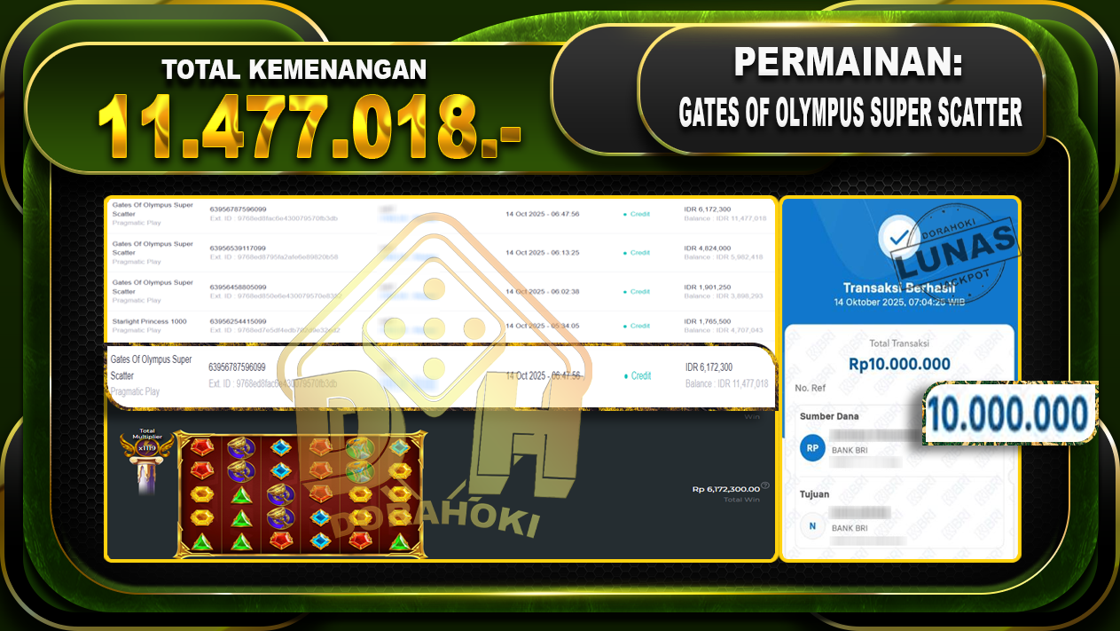 Bukti JP Gates Of Olympus Super Scatter – ucapkan selamat kepada user id nrxxx atas kemenangan di Gates Of Olympus Super Scatter dengan total kemenangan Rp.11.477.018,- Yang pasti nya langsung LUNAS sesuai bukti ya bosku. Dorahoki nih bosku berapapun akan tetap kami bayar lunas ya bosku