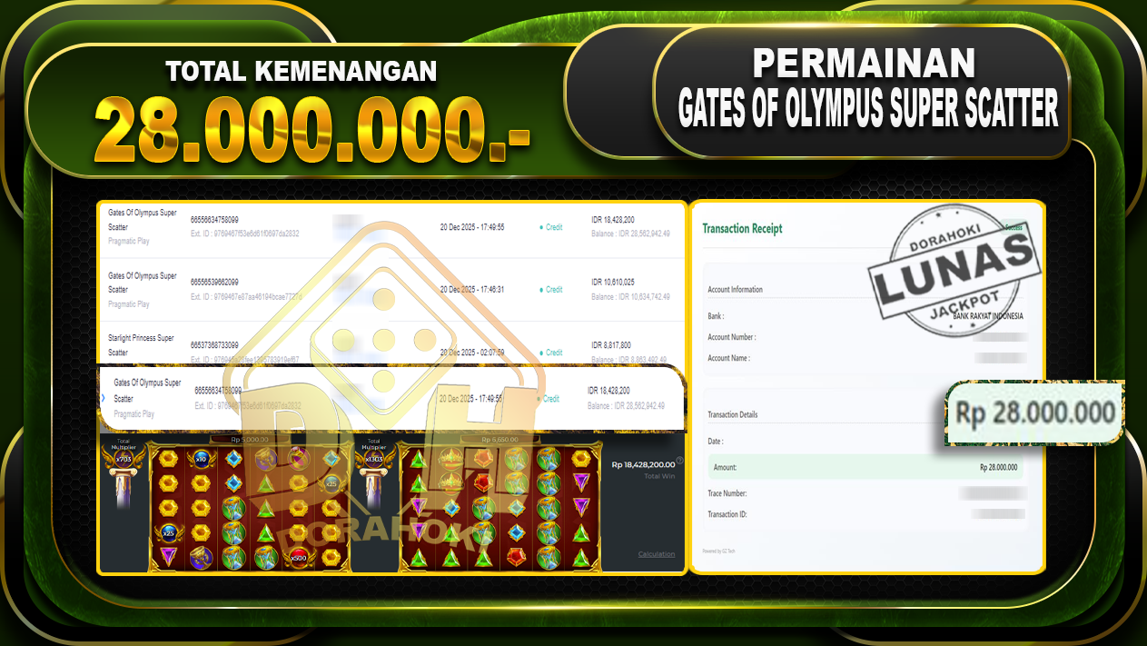 Bukti JP Gates Of Olympus Super Scatter – ucapkan selamat kepada user id anixxx atas kemenangan di Gates Of Olympus Super Scatter dengan total kemenangan Rp.28.000.000,- Yang pasti nya langsung LUNAS sesuai bukti ya bosku. Dorahoki nih bosku berapapun akan tetap kami bayar lunas ya bosku