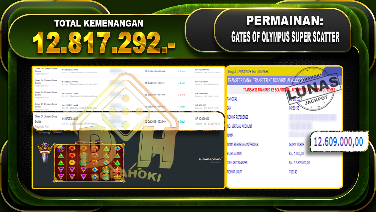 Bukti JP Gates Of Olympus Super Scatter – ucapkan selamat kepada user id antxxxxx atas kemenangan di Gates Of Olympus Super Scatter dengan total kemenangan Rp.12.817.292,- Yang pasti nya langsung LUNAS sesuai bukti ya bosku. Dorahoki nih bosku berapapun akan tetap kami bayar lunas ya bosku