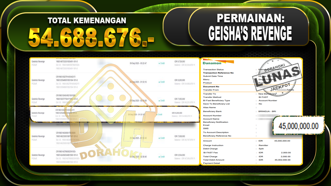 Bukti JP Geisha’s Revenge – Yang kami berikan ini sah dan real tanpa di rekayasa bosku dan hanya bertujuan untuk meningkatkan kepercayaan member kami dan memberikan kenyamanan saat bermain jadi bosku tidak perlu khawatir MENANG BERAPAPUN PASTI KAMI BAYAR LUNAS!!