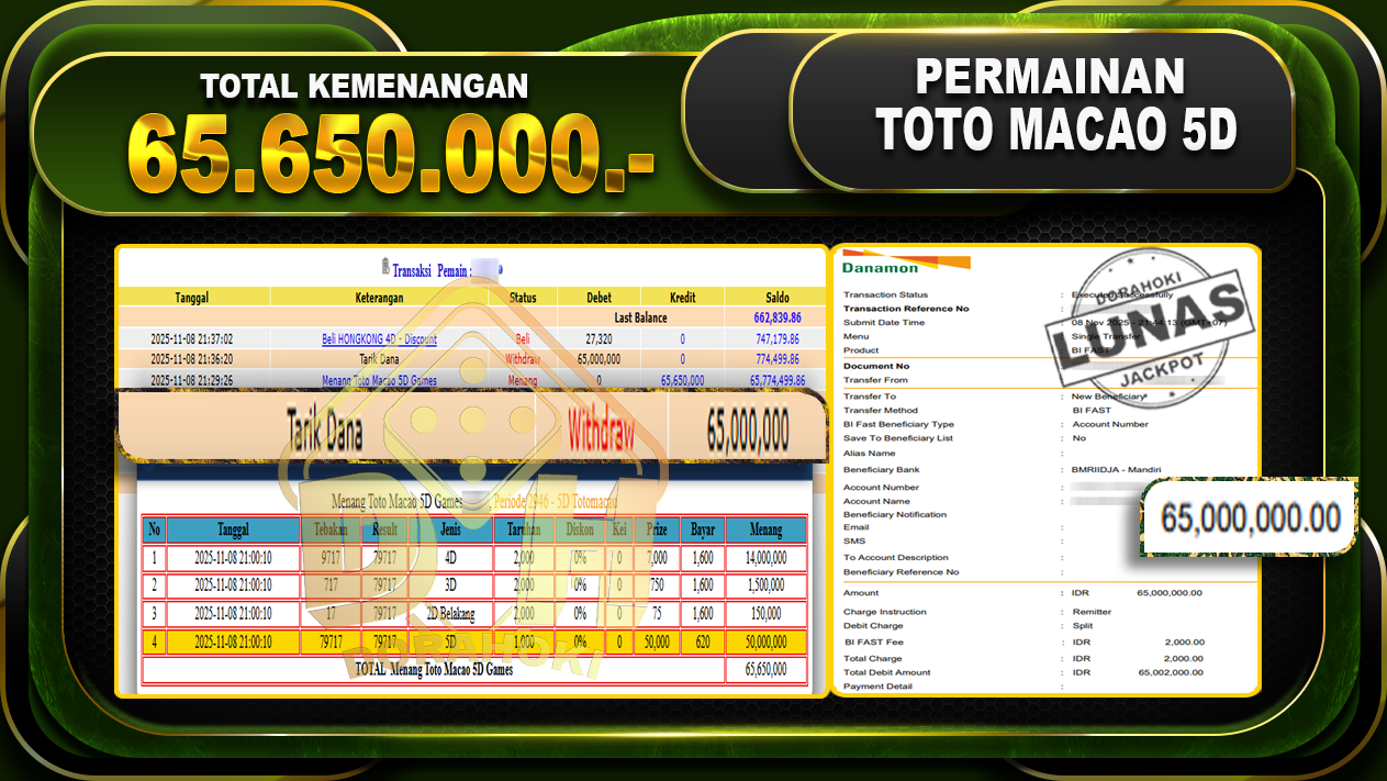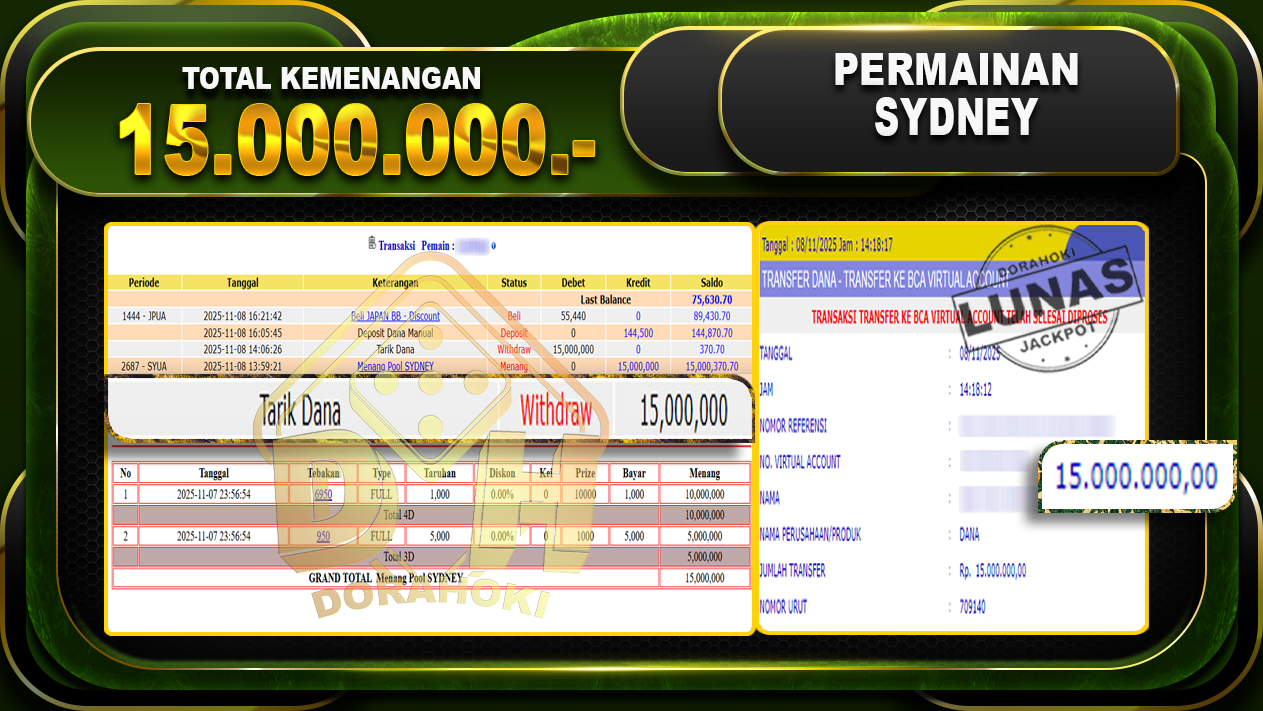 DORAHOKI NIH BOSKU! MENANG BERAPAPUN PASTI KAMI BAYAR LUNAS!!