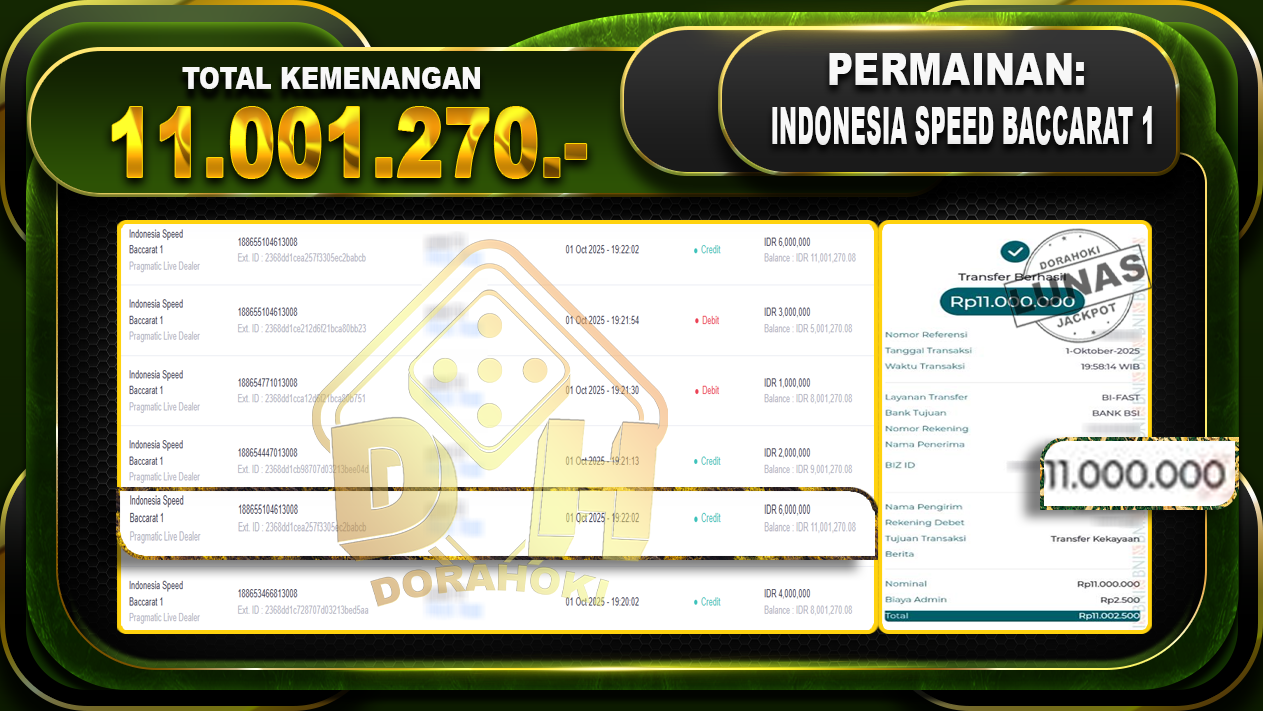 Indonesia Speed Baccarat 1 – DORAHOKI 01 OKTOBER 2025