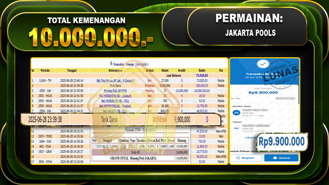 JAKARTA POOLS – DORAHOKI 29 June 2025