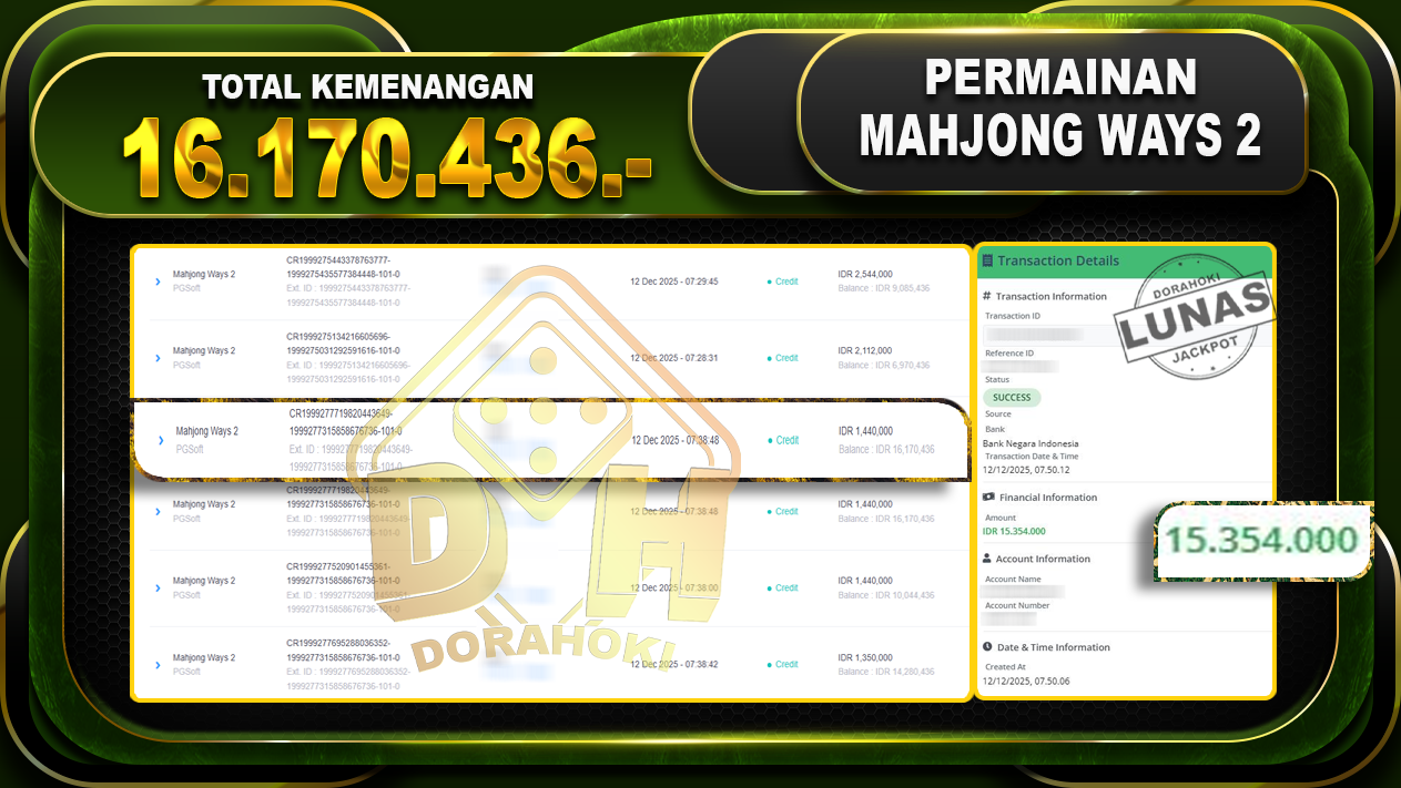 Bukti JP Mahjong Ways 2 – ucapkan selamat kepada user id rifxxx atas kemenangan di Mahjong Ways 2 dengan total kemenangan Rp.16.170.436,- Yang pasti nya langsung LUNAS sesuai bukti ya bosku. Dorahoki nih bosku berapapun akan tetap kami bayar lunas ya bosku