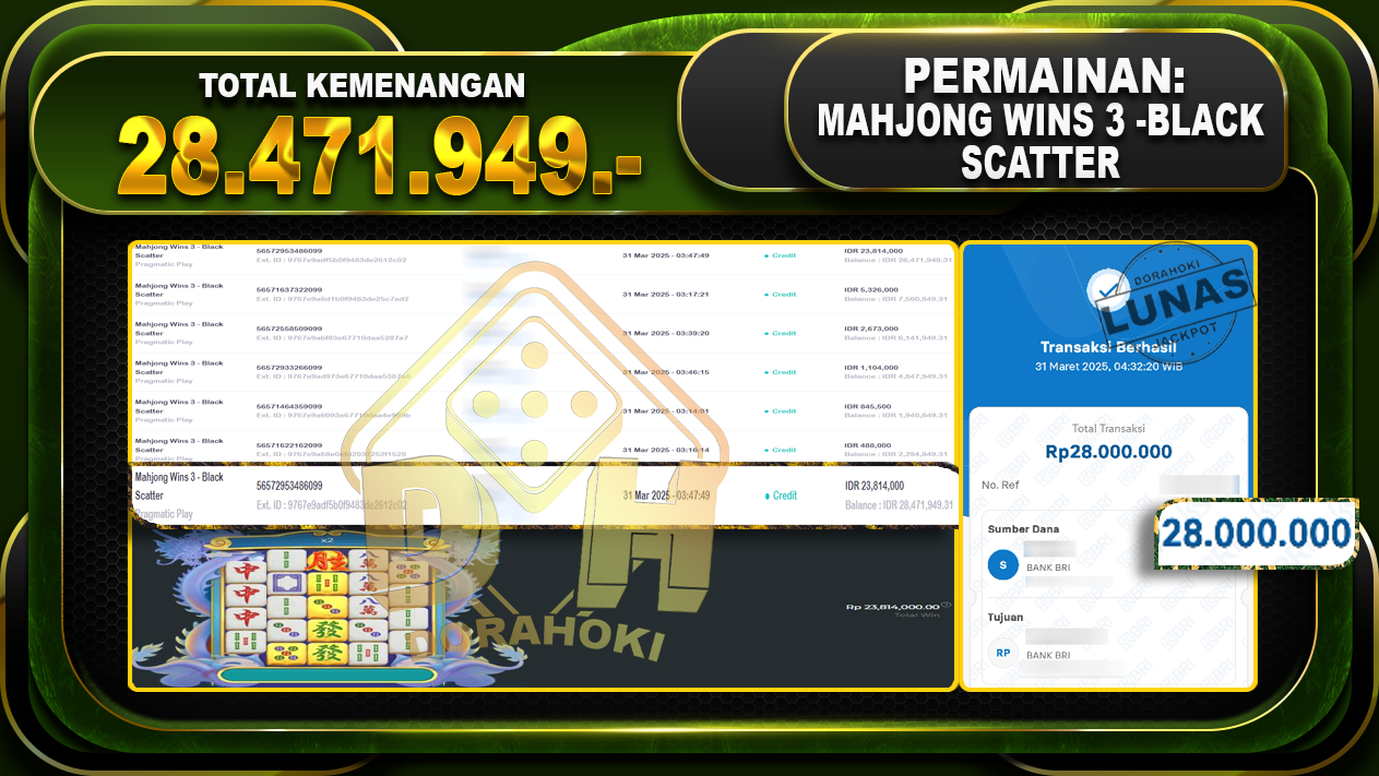 Bukti JP MAHJONG WINS 3 BLACK SCATTER – Yang kami berikan ini sah dan real tanpa di rekayasa bosku dan hanya bertujuan untuk meningkatkan kepercayaan member kami dan memberikan kenyamanan saat bermain jadi bosku tidak perlu khawatir MENANG BERAPAPUN PASTI KAMI BAYAR LUNAS!!