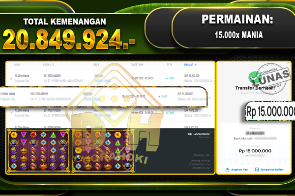 Bukti JP Double Fortune – ucapkan selamat kepada user id Tijxxx atas kemenangan di Double Fortune dengan total kemenangan Rp.17.189.218,- . Yang pasti nya langsung LUNAS sesuai bukti ya bosku. Dorahoki nih bosku berapapun akan tetap kami bayar lunas ya bosku.