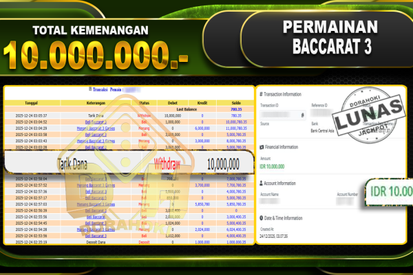 BACCARAT 3 GAMES – DORAHOKI 24 DESEMBER 2025