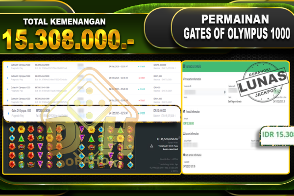 Bukti JP Gates Of Olympus 1000 – ucapkan selamat kepada user id tolxxxxx atas kemenangan di  Gates Of Olympus 1000 dengan total kemenangan Rp.15.308.000,- Yang pasti nya langsung LUNAS sesuai bukti ya bosku. Dorahoki nih bosku berapapun akan tetap kami bayar lunas ya bosku