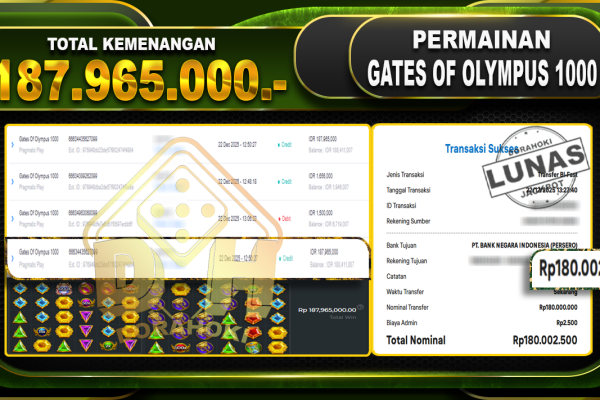 Bukti JP Gates Of Olympus 1000 – ucapkan selamat kepada user id marxxxxx atas kemenangan di  Gates Of Olympus 1000 dengan total kemenangan Rp.187.965.000,- Yang pasti nya langsung LUNAS sesuai bukti ya bosku. Dorahoki nih bosku berapapun akan tetap kami bayar lunas ya bosku