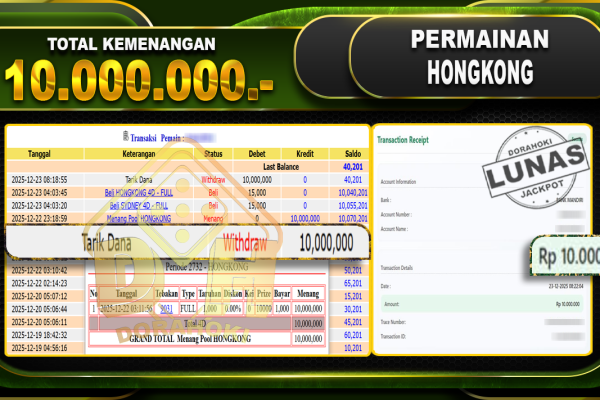 Bukti JP TOGEL HONGKONG – ucapkan selamat kepada user id bulxxxxx atas kemenangan di TOGEL HONGKONG dengan total kemenangan Rp.10.000.000,- . Yang pasti nya langsung LUNAS sesuai bukti ya bosku. Dorahoki nih bosku berapapun akan tetap kami bayar lunas ya bosku. Kami mengucapkan Terima Kasih telah mempercayakan DORAHOKI sebagai Bandar Online pilihan dalam bermain judi online….