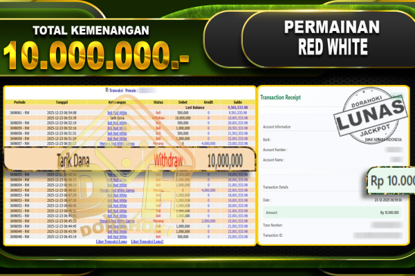 Bukti JP RED WHITE – ucapkan selamat kepada user id henxxxxx atas kemenangan di RED WHITE dengan total kemenangan Rp.10.000.000,- . Yang pasti nya langsung LUNAS sesuai bukti ya bosku. Dorahoki nih bosku berapapun akan tetap kami bayar lunas ya bosku. Kami mengucapkan Terima Kasih telah mempercayakan DORAHOKI sebagai Bandar Online pilihan dalam bermain judi…
