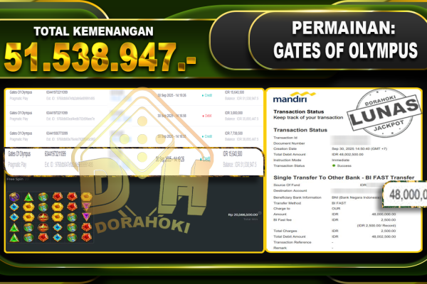 Bukti JP Gates Of Olympus – ucapkan selamat kepada user id kamxxxxxx atas kemenangan di  Gates Of Olympus dengan total kemenangan Rp.51,538.947,- Yang pasti nya langsung LUNAS sesuai bukti ya bosku. Dorahoki nih bosku berapapun akan tetap kami bayar lunas ya bosku