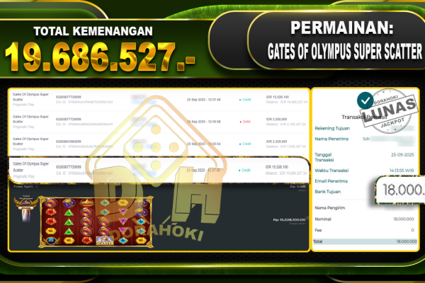 Bukti JP Gates Of Olympus Super Scatter – ucapkan selamat kepada user id marxxx  atas kemenangan di  Gates Of Olympus Super Scatter dengan total kemenangan Rp.19.686.527,- Yang pasti nya langsung LUNAS sesuai bukti ya bosku. Dorahoki nih bosku berapapun akan tetap kami bayar lunas ya bosku