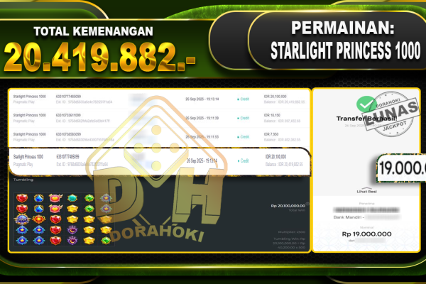 Bukti JP Starlight Princess 1000 – ucapkan selamat kepada user id nenxxxxx atas kemenangan di  Starlight Princess 1000 dengan total kemenangan Rp.20,419,882,- Yang pasti nya langsung LUNAS sesuai bukti ya bosku. Dorahoki nih bosku berapapun akan tetap kami bayar lunas ya bosku