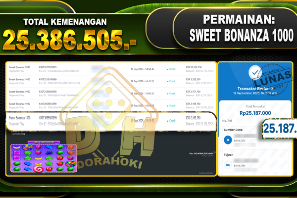 Bukti JP Sweet Bonanza 1000 – ucapkan selamat kepada user id Praxxxxxx atas kemenangan di  Sweet Bonanza 1000 dengan total kemenangan Rp.25,386,505,- Yang pasti nya langsung LUNAS sesuai bukti ya bosku. Dorahoki nih bosku berapapun akan tetap kami bayar lunas ya bosku