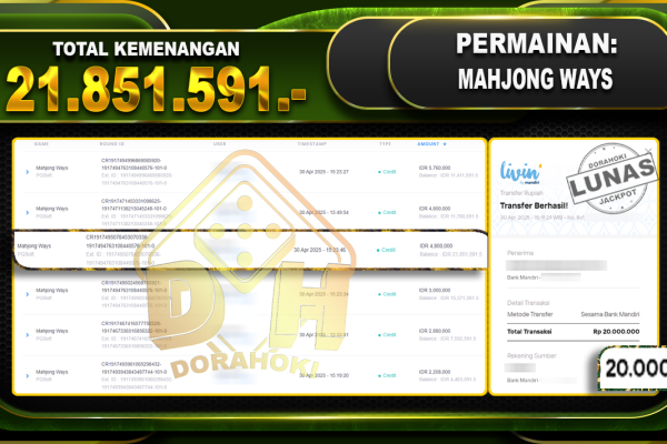 Bukti JP MAHJONG WINS 2 – ucapkan selamat kepada user id Dogxxx atas kemenangan di MAHJONG WINS 2 dengan total kemenangan Rp.81.114.098- . Yang pasti nya langsung LUNAS sesuai bukti ya bosku. Dorahoki nih bosku berapapun akan tetap kami bayar lunas ya bosku.
