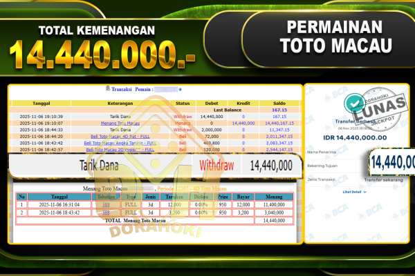 Bukti JP TOGEL SINGAPORE – ucapkan selamat kepada user id Mtoxxx atas kemenangan di TOGEL SINGAPORE dengan total kemenangan Rp.11.000.000,- . Yang pasti nya langsung LUNAS sesuai bukti ya bosku. Dorahoki nih bosku berapapun akan tetap kami bayar lunas ya bosku. Kami mengucapkan Terima Kasih telah mempercayakan DORAHOKI sebagai Bandar Online pilihan dalam bermain judi…