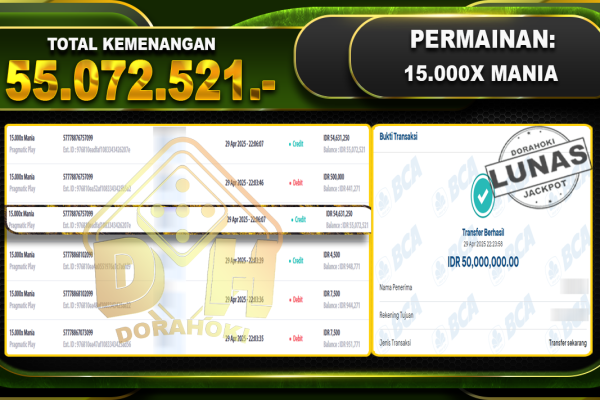 Bukti JP TOGEL Carolinaeve – ucapkan selamat kepada user id Uloxxx atas kemenangan di TOGEL Carolinaeve dengan total kemenangan Rp 10.870.000,- . Yang pasti nya langsung LUNAS sesuai bukti ya bosku. Dorahoki nih bosku berapapun akan tetap kami bayar lunas ya bosku. Kami mengucapkan Terima Kasih telah mempercayakan DORAHOKI sebagai Bandar Online pilihan dalam bermain judi…