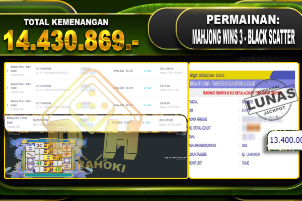 Bukti JP Mahjong Wins 3 – Black Scatter – ucapkan selamat kepada user id Roonxxxxx atas kemenangan di Mahjong Wins 3 – Black Scatter dengan total kemenangan Rp.14.430.869,- Yang pasti nya langsung LUNAS sesuai bukti ya bosku. Dorahoki nih bosku berapapun akan tetap kami bayar lunas ya bosku