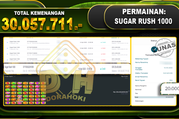 Bukti JP SUGAR RUSH 1000 – ucapkan selamat kepada user id Jitxxx atas kemenangan di SUGAR RUSH 1000 dengan total kemenangan Rp.30.057.711,- . Yang pasti nya langsung LUNAS sesuai bukti ya bosku. Dorahoki nih bosku berapapun akan tetap kami bayar lunas ya bosku. Kami mengucapkan Terima Kasih telah mempercayakan DORAHOKI sebagai Bandar Online pilihan dalam bermain…