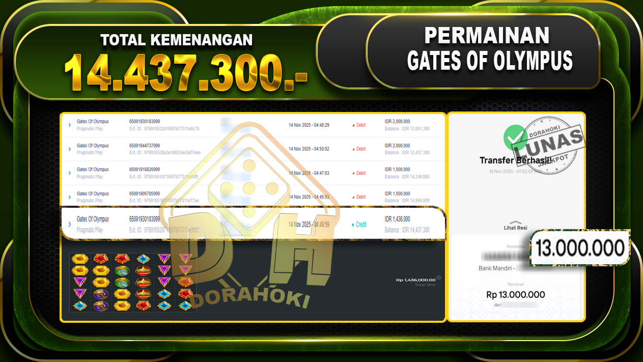 Kami mengucapkan Terima Kasih telah mempercayakan DORAHOKI sebagai Bandar Online pilihan dalam bermain judi online. Semoga bosku bisa tetap bermain dengan nyaman ya bosku di Bandar Online kami ini ya bosku. Jika ada kendala bisa langsung hubungi CS kami di livechat dan WA yang online 24 jam tanpa libur ya bosku. Semoga kedepannya bosku bisa JP lebih banyak lagi dan tentu saja tidak perlu khawatir untuk pembayaran. DORAHOKI merupakan Bandar Online yg Aman dan Terpercaya JackPot berapapun pasti akan kami bayarkan langsung LUNAS ya bosku.