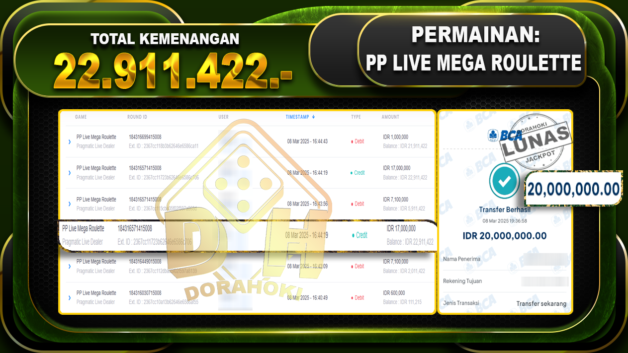 PP LIVE MEGA ROULETTE – DORAHOKI 08 Maret 2025