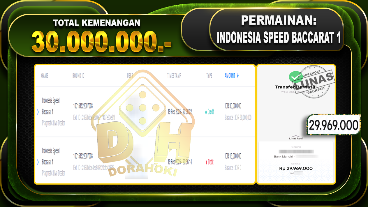 Bukti JP PP LIVE SPEED BACCARAT B – ucapkan selamat kepada user id desiani1xxx atas kemenangan di LIVE SPEED BACCARAT B dengan total kemenangan Rp.30.000.000,- . Yang pasti nya langsung LUNAS sesuai bukti ya bosku. Dorahoki nih bosku berapapun akan tetap kami bayar lunas ya bosku.