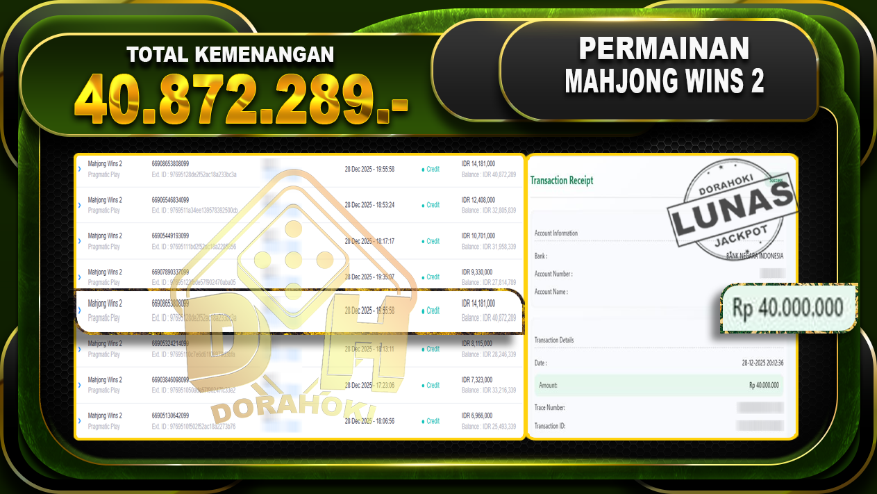 Kami mengucapkan Terima Kasih telah mempercayakan DORAHOKI sebagai Bandar Online pilihan dalam bermain judi online. Semoga bosku bisa tetap bermain dengan nyaman ya bosku di Bandar Online kami ini ya bosku. Jika ada kendala bisa langsung hubungi CS kami di livechat dan WA yang online 24 jam tanpa libur ya bosku. Semoga kedepannya bosku bisa JP lebih banyak lagi dan tentu saja tidak perlu khawatir untuk pembayaran. DORAHOKI merupakan Bandar Online yg Aman dan Terpercaya JackPot berapapun pasti akan kami bayarkan langsung LUNAS ya bosku.
