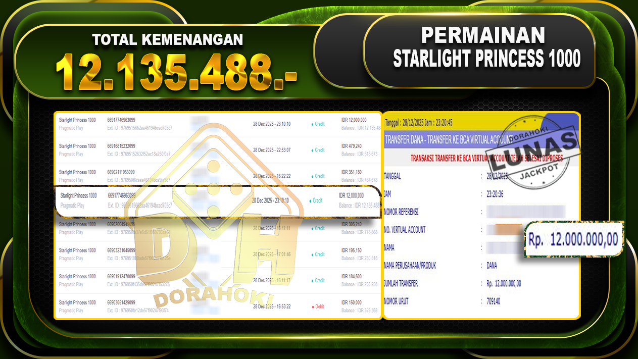 Bukti JP STARLIGHT PRINCESS 1000 – Yang kami berikan ini sah dan real tanpa di rekayasa bosku dan hanya bertujuan untuk meningkatkan kepercayaan member kami dan memberikan kenyamanan saat bermain jadi bosku tidak perlu khawatir MENANG BERAPAPUN PASTI KAMI BAYAR LUNAS!!