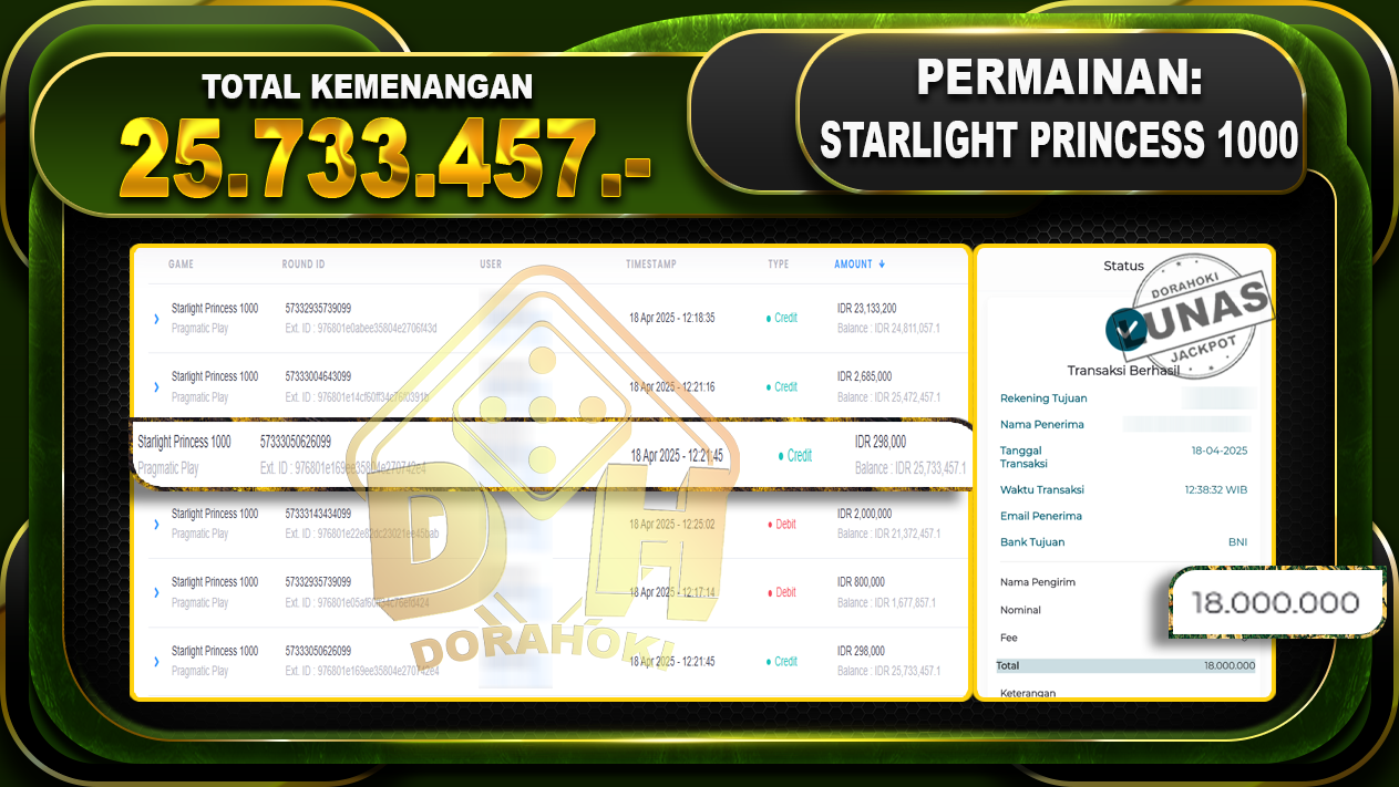 STARLIGHT PRINCESS 1000 – DORAHOKI 18 April 2025