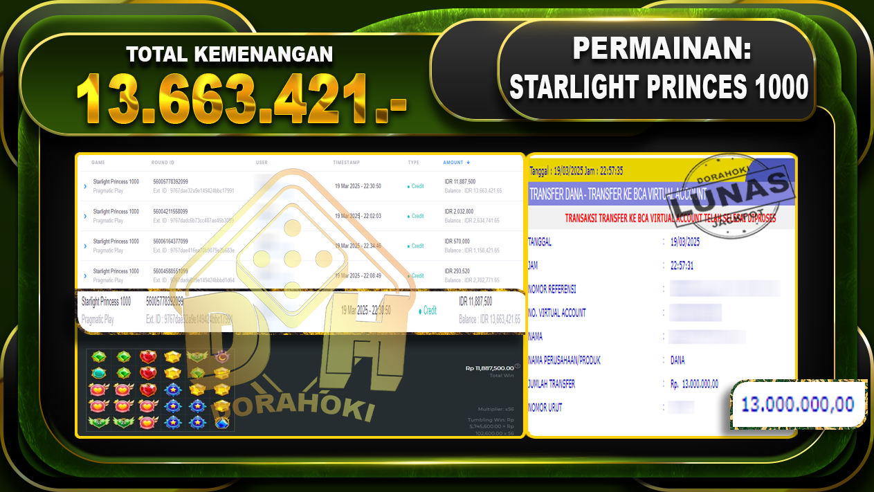 Bukti JP STARLIGHT PRINCESS 1000 – ucapkan selamat kepada user id Butxxx atas kemenangan di STARLIGHT PRINCESS 1000 dengan total kemenangan Rp.13,663.421,- . Yang pasti nya langsung LUNAS sesuai bukti ya bosku. Dorahoki nih bosku berapapun akan tetap kami bayar lunas ya bosku