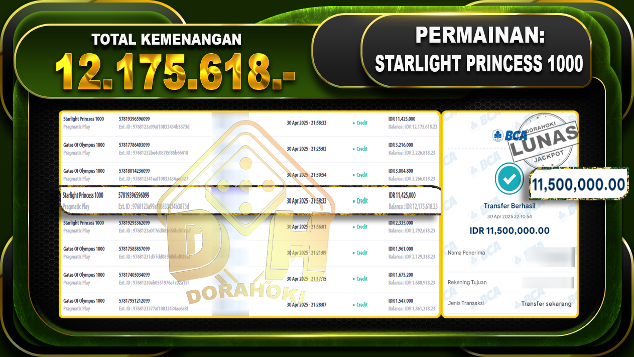Bukti JP STARLIGHT PRINCESS 1000 – ucapkan selamat kepada user id Marxxx atas kemenangan di STARLIGHT PRINCESS 1000 dengan total kemenangan Rp.12.175.618,- . Yang pasti nya langsung LUNAS sesuai bukti ya bosku. Dorahoki nih bosku berapapun akan tetap kami bayar lunas ya bosku