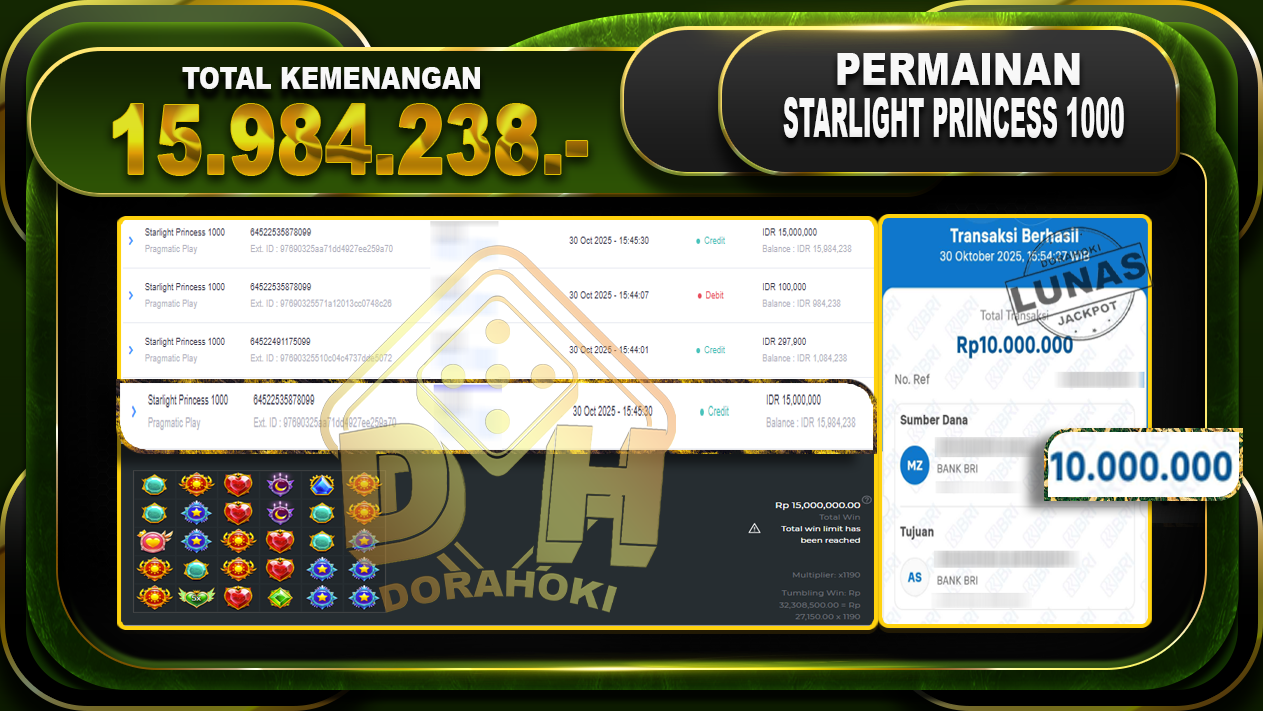 Bukti JP Starlight Princess 1000 – ucapkan selamat kepada user id kakxxxx atas kemenangan di Starlight Princess 1000 dengan total kemenangan Rp.15,984,238,- Yang pasti nya langsung LUNAS sesuai bukti ya bosku. Dorahoki nih bosku berapapun akan tetap kami bayar lunas ya bosku