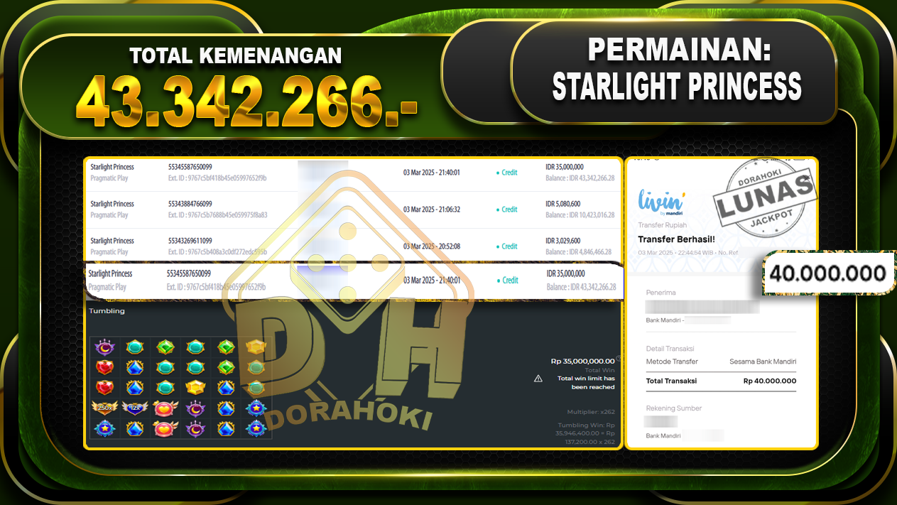 Bukti JP STARLIGHT PRINCESS – ucapkan selamat kepada user id Banxxx atas kemenangan di STARLIGHT PRINCESS dengan total kemenangan Rp.43,342.266,- . Yang pasti nya langsung LUNAS sesuai bukti ya bosku. Dorahoki nih bosku berapapun akan tetap kami bayar lunas ya bosku.