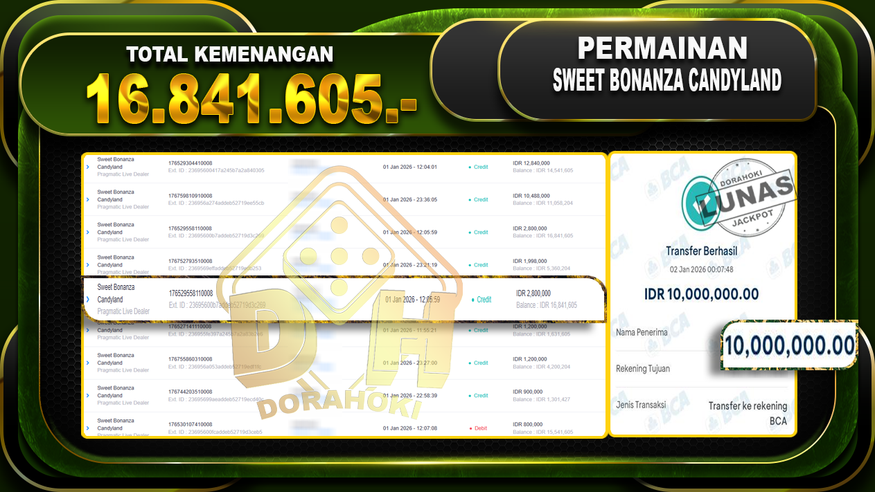 Bukti JP Sugar Rush 1000 – ucapkan selamat kepada user id jamxxxxx atas kemenangan di  Sugar Rush 1000 dengan total kemenangan Rp.17.583.625,- Yang pasti nya langsung LUNAS sesuai bukti ya bosku. Dorahoki nih bosku berapapun akan tetap kami bayar lunas ya bosku