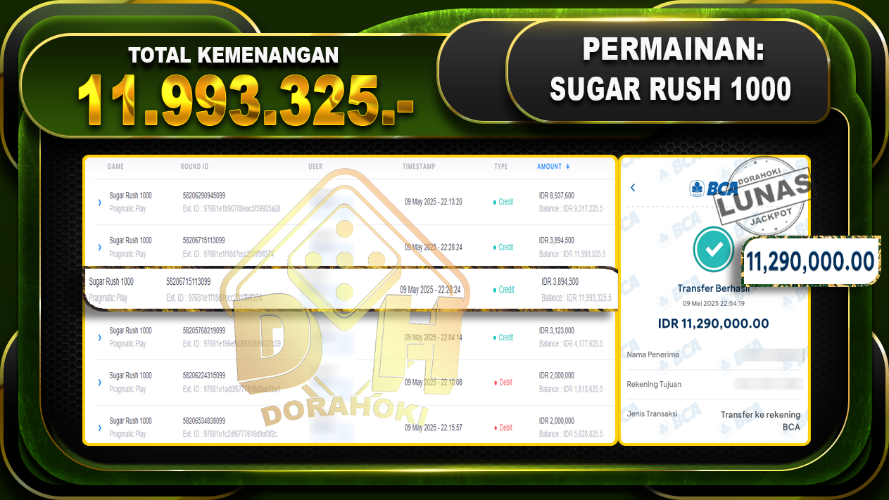 Bukti JP SUGAR RUSH 1000 – ucapkan selamat kepada user id Dwixxx atas kemenangan di SUGAR RUSH 1000 dengan total kemenangan Rp.11.993.325,- . Yang pasti nya langsung LUNAS sesuai bukti ya bosku. Dorahoki nih bosku berapapun akan tetap kami bayar lunas ya bosku.