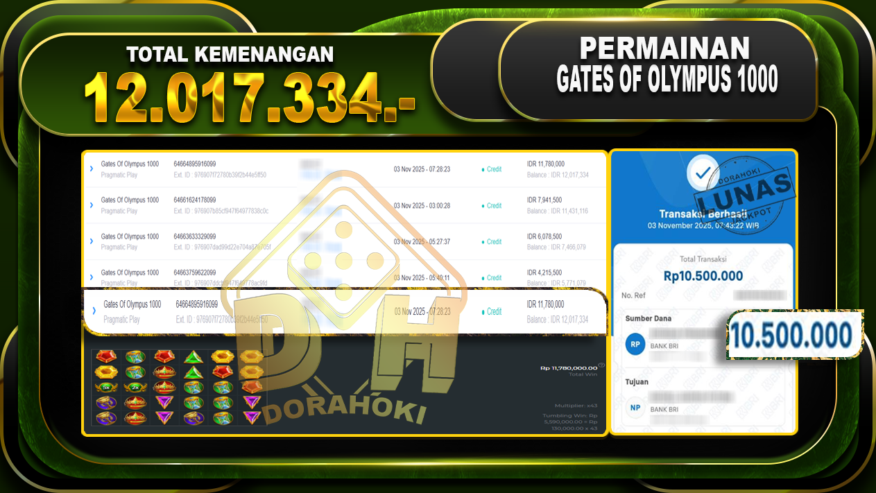 Bukti JP Sweet Bonanza 1000 – ucapkan selamat kepada user id ridxxxxx atas kemenangan di Sweet Bonanza 1000 dengan total kemenangan Rp.12.934.094,- Yang pasti nya langsung LUNAS sesuai bukti ya bosku. Dorahoki nih bosku berapapun akan tetap kami bayar lunas ya bosku.
