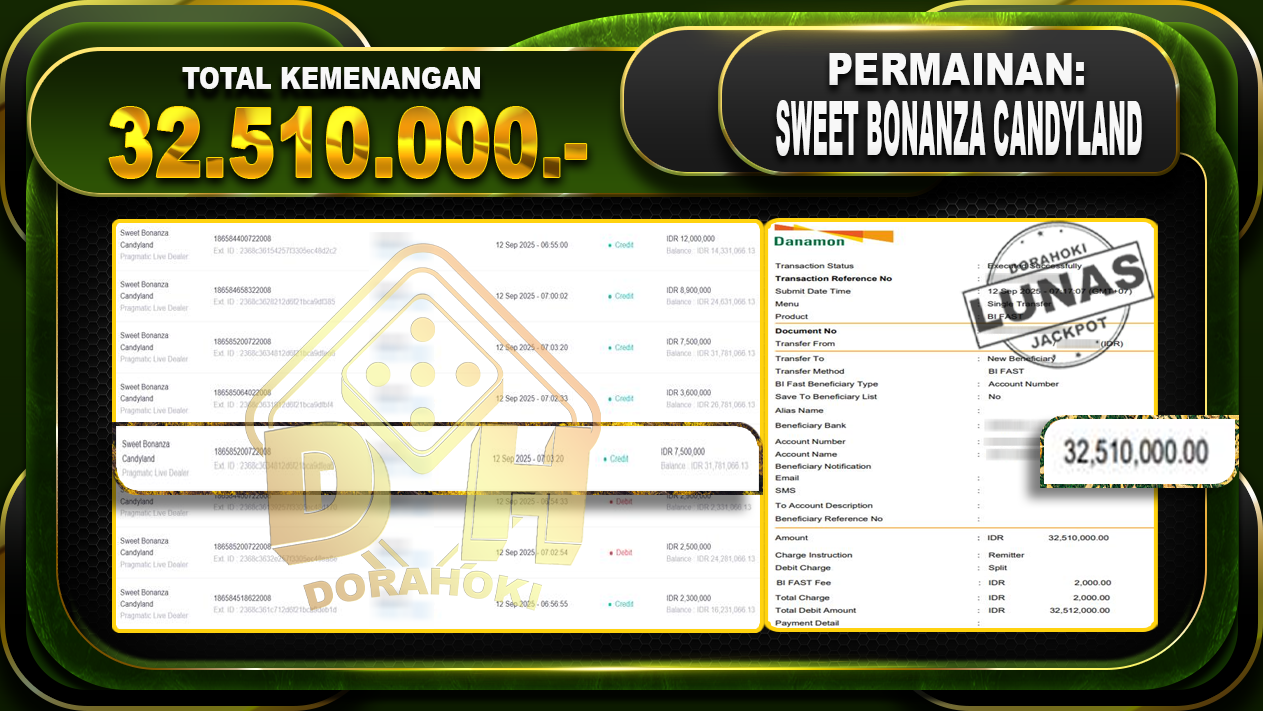 Bukti JP Sweet Bonanza Candyland – ucapkan selamat kepada user id Kiboxxxxx atas kemenangan di Sweet Bonanza Candyland dengan total kemenangan Rp.32.510.000,- Yang pasti nya langsung LUNAS sesuai bukti ya bosku. Dorahoki nih bosku berapapun akan tetap kami bayar lunas ya bosku