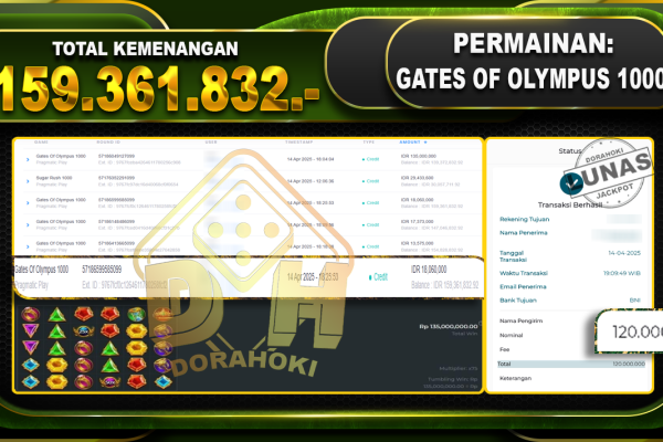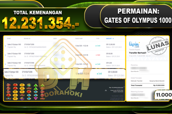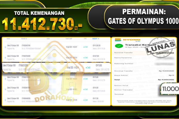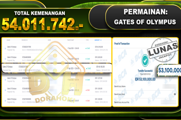 Bukti JP GATES OF OLYMPUS – ucapkan selamat kepada user id Yahxxx atas kemenangan di GATES OF OLYMPUS 1000 dengan total kemenangan Rp.54.011.742,- . Yang pasti nya langsung LUNAS sesuai bukti ya bosku. Dorahoki nih bosku berapapun akan tetap kami bayar lunas ya bosku.