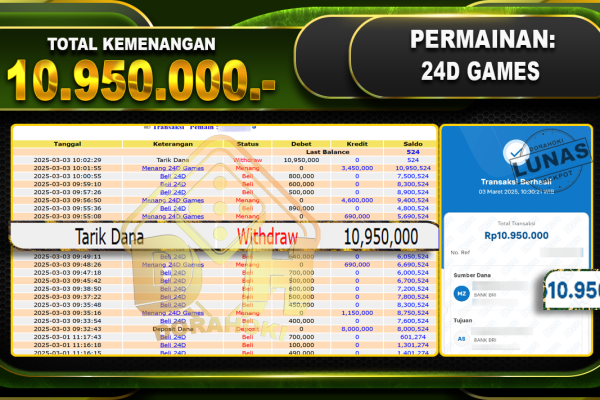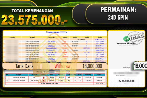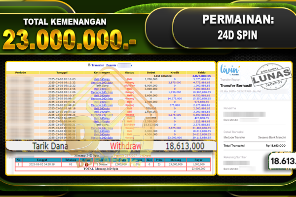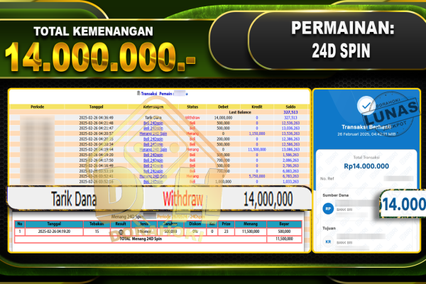 Bukti JP 24D SPIN- ucapkan selamat kepada user id Jemxxx atas kemenangan di 24D SPIN dengan total kemenangan Rp.10.950.000,- . Yang pasti nya langsung LUNAS sesuai bukti ya bosku. Dorahoki nih bosku berapapun akan tetap kami bayar lunas ya bosku. Kami mengucapkan Terima Kasih telah mempercayakan DORAHOKI sebagai Bandar Online pilihan dalam bermain judi online. Semoga…
